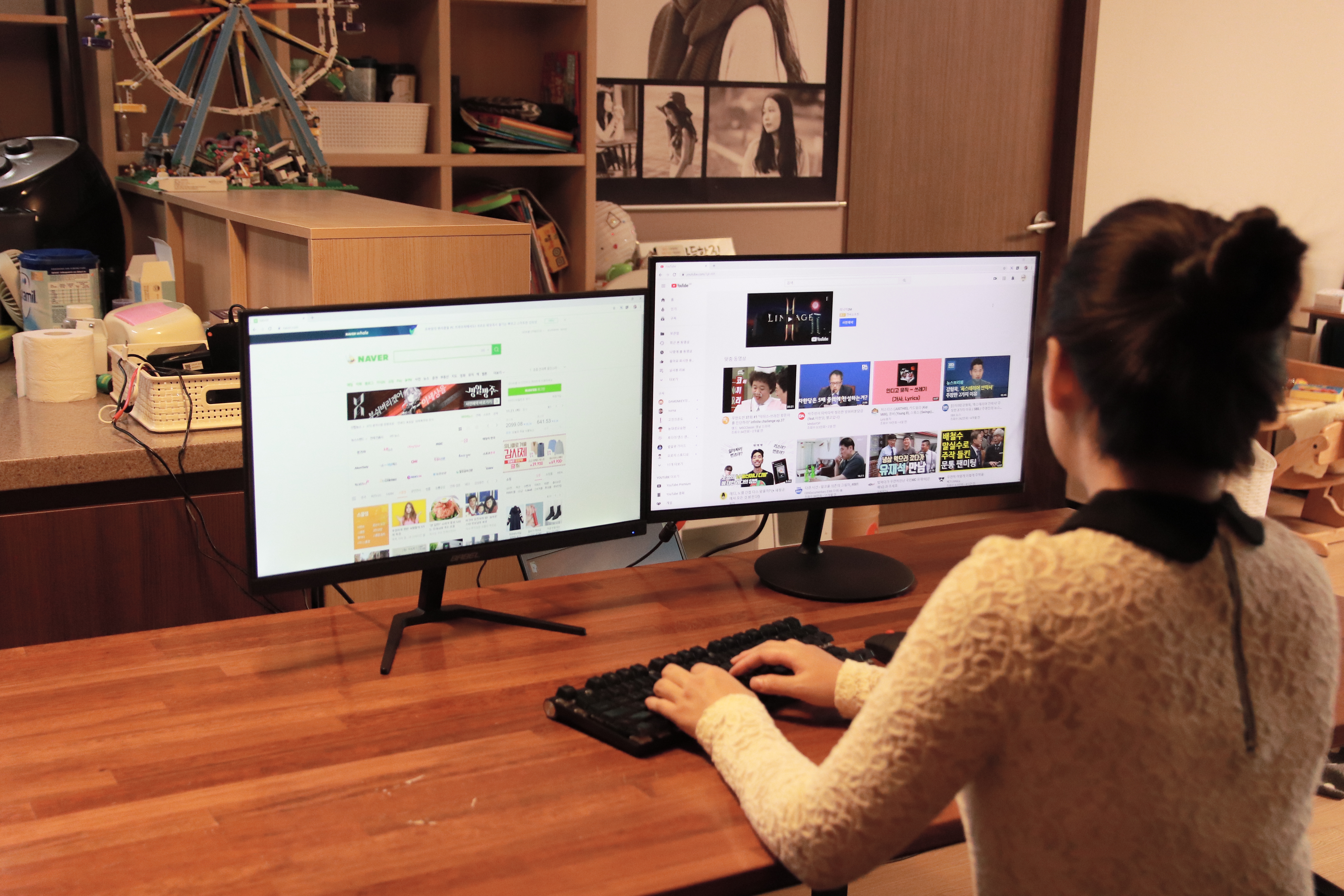 그래서 저는 가정용으로 심플하게 사용하려면 24인치 2대로 세팅하는 것이 가장 이상적이라고 생각합니다. 24인치와 22인치의 조합도 괜찮고요.