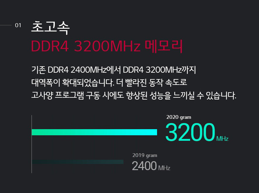 램은 기본 8GB에 듀얼채널 지원하고 대역폭이 확대되었습니다.
