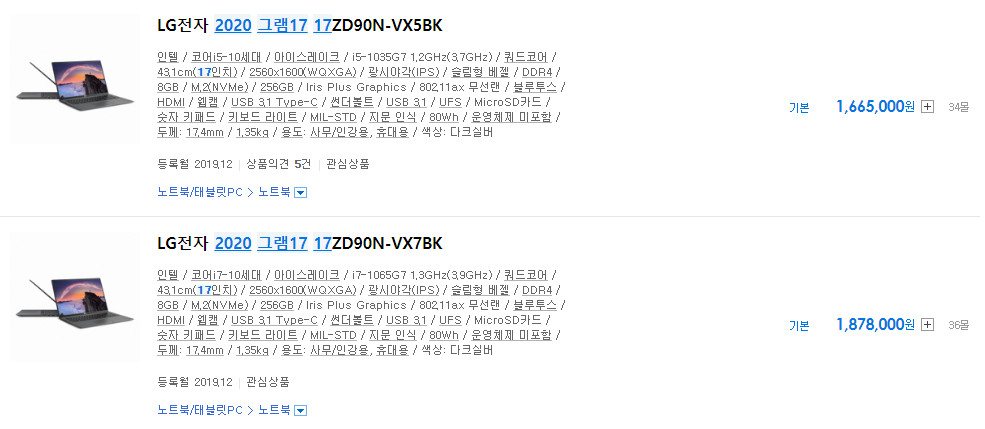 LG, 그램17, 그램, 2020, 장점, 단점, Gram, 1065G7, 1035G7, 17Z90N, VA7WK, VX5BK, 17인치, 아이스레이크