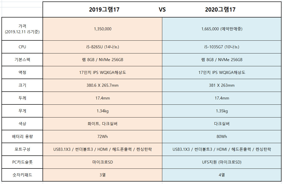 LG, 그램17, 그램, 2019, 2020, 장점, 단점, Gram, 1065G7, 1035G7, 17Z90N, VA7WK, VX5BK, 17인치, 아이스레이크, 위스키레이크, 비교