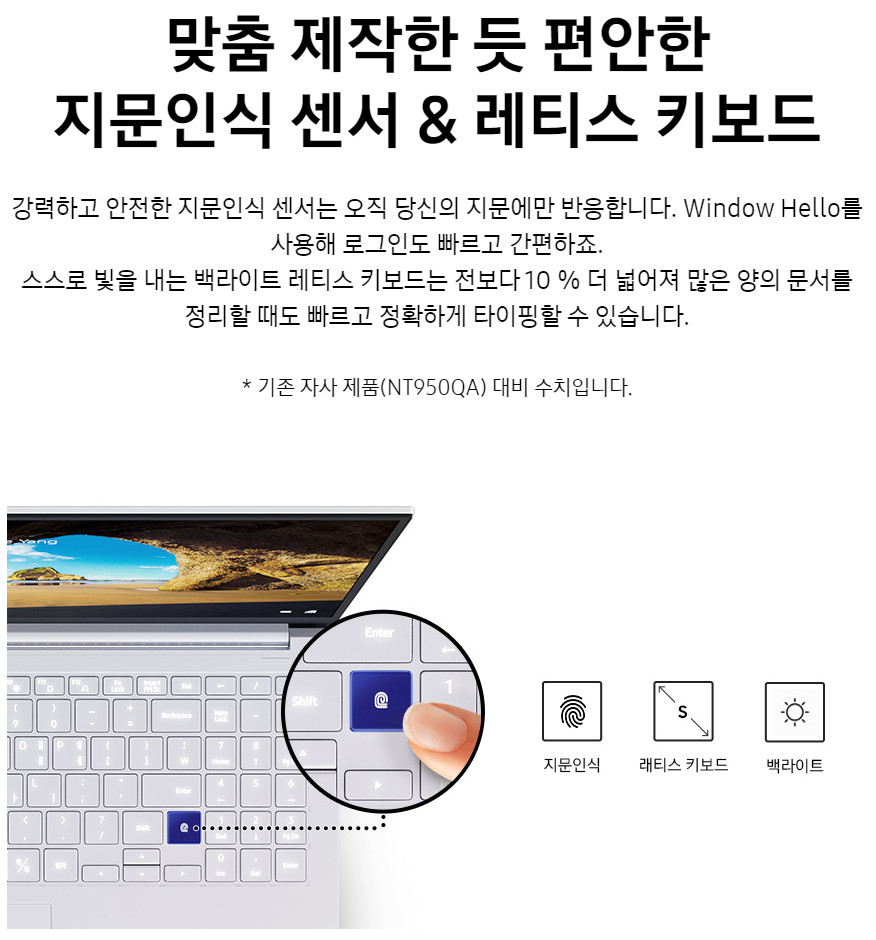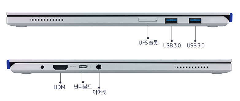 삼성에서 에르고리프트 흰지 지원하는 건 처음 본 것 같네요. 액정을 열었을 때 이렇게 각도가 생기는 것을 에르고리프트라고 하고, 본체 바닥에서 나오는 발열을 좀 더 효율적으로 냉각시켜주는 동시에 타이핑 포지션을 좀 더 안정적으로 해주는 기능인데 보통 바닥에 닿는 이 부분에 고무재질이 붙어 있어야 흰지 오픈 시 안정적으로 거치가 가능한데 사진상으로는 뭐 보이는 건 없네요. 실물 나오면 확인해 보겠습니다. 만약 여기 고무가 안 붙어있으면 실용성보다 디자인을 고려한 거에요. 좋지못한 겁니다. 그리고 이 기능은 구조상 180도 흰지 오픈이 되지 않습니다.