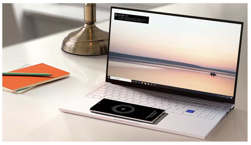 스마트폰 무선충전 가능합니다. 충전 가능 위치가 트랙패드 부분인 걸로 보이는데 이렇게 충전하면 트랙패드도 사용 못하고 키보드 사용도 불편할거 같네요. 무선 충전에 필요한 부품인 코일이 굉장히 얇아서 숫자패드 아래로 충분히 위치 시킬 수 있었을 거 같은데, 좋은 기능이지만 위치가 아쉽다고 생각 됩니다.