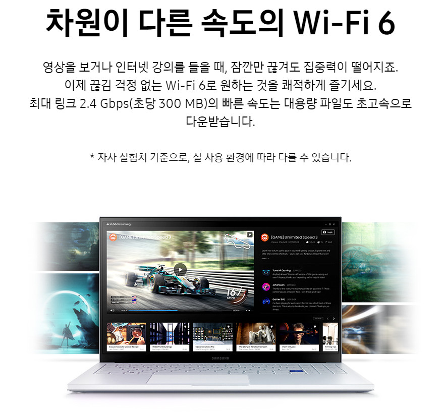 와이파이6로 초당 300MB까지 무선 속도 나옵니다. 유튜브 화질이 계속 좋아지면서 장기적으로는 와이파이6 같은 고속 무선 기술이 중요하다고 생각합니다.
