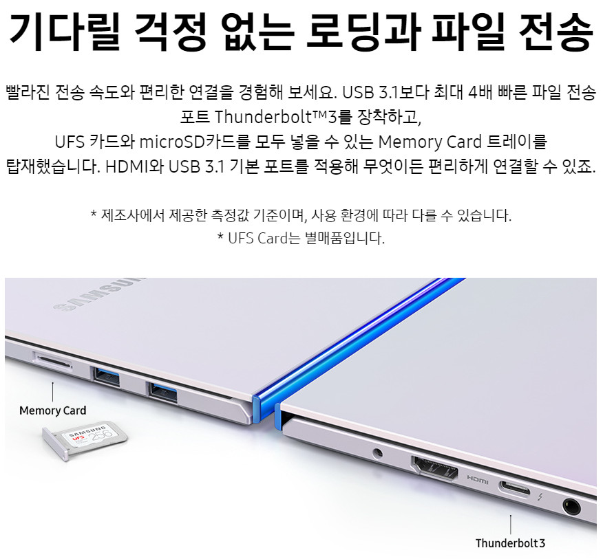 그램은 정말 경량만을 위해 달려온 노트북 같다는 인상을 줍니다. 썬더볼트3나 고화질IPS액정과 같은 프리미엄 노트북으로써 가져야할 최소한의 기능들만 갖고 나머지는 오로지 큰 배터리와 경량에만 신경을 썼습니다.