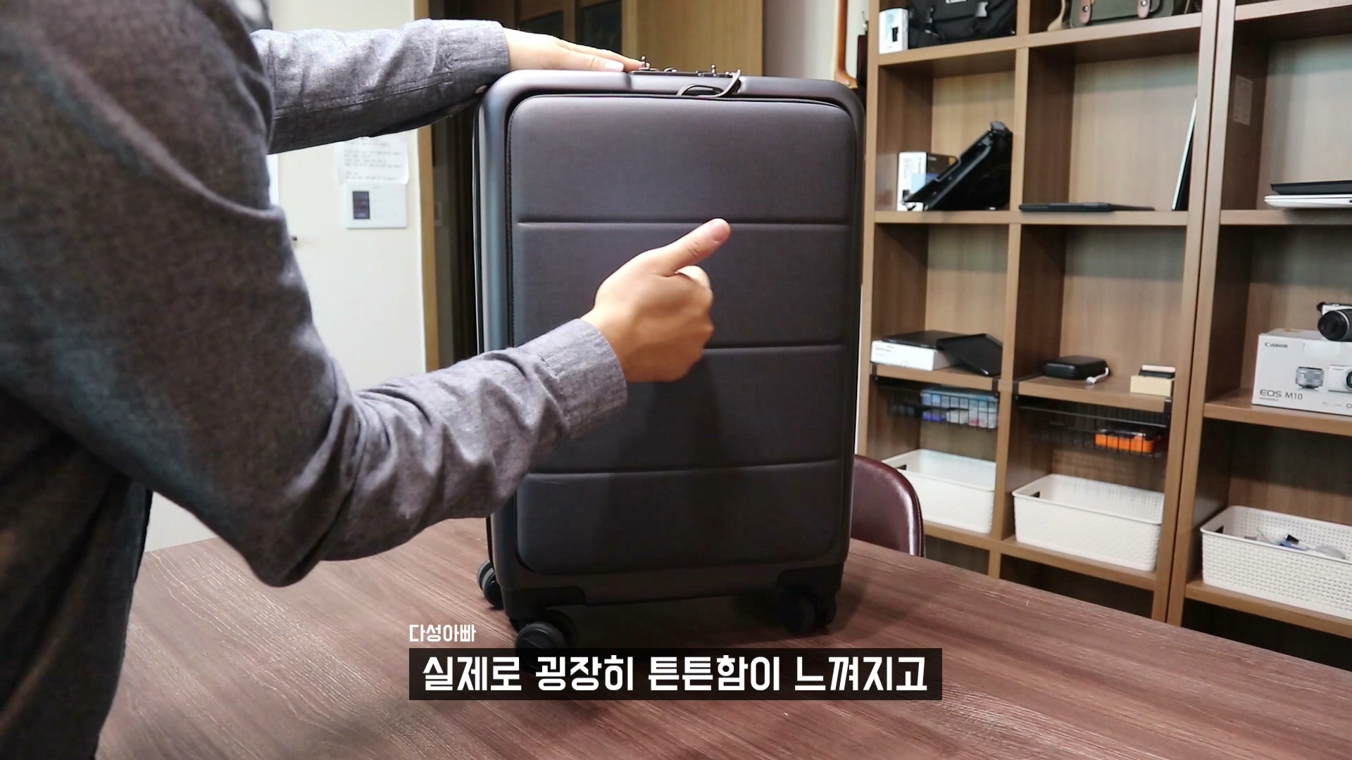 이 캐리어는 확장기능이 없습니다. 캐리어가 확장이 되지 않는 다는 것을 굉장히 큰 단점이라 생각하기 쉽겠지만 이 캐리어의 사용 목적을 생각해보면 사실 당연한 겁니다. 보통 노트북을 캐리어에 넣지는 않습니다. 충격 때문에 노트북 파손이 염려되기 때문이죠. 하지만 이 캐리어는 처음부터 노트북을 안전하게 보호하게끔 설계되어 있어요. 그리고 그것이 이 캐리어를 사용하는 이유입니다. 그런데 확장을 하게 되면 캐리어가 전체적으로 흔들림이 생기고 내부로 충격이 들어옵니다. 이러한 이유로 확장이 되지않는 캐리어 입니다.
