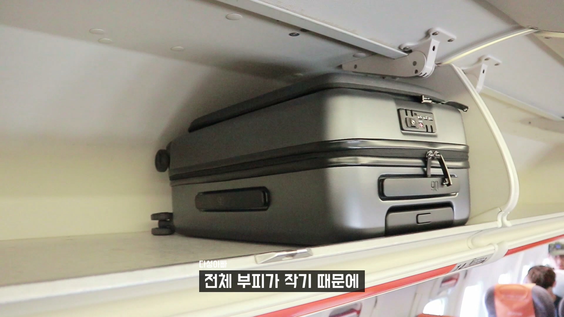 내부는 일반적인 캐리어와 다른 점은 없지만 내부 마감과 바느질 상태가 굉장히 좋습니다. 기내용 캐리어가 모두 그렇듯 내부 공간은 협소합니다. 공간이 협소한 만큼 전체 부피가 작기 때문에 이렇게 기내에 가지고 들어갈 수 있습니다.