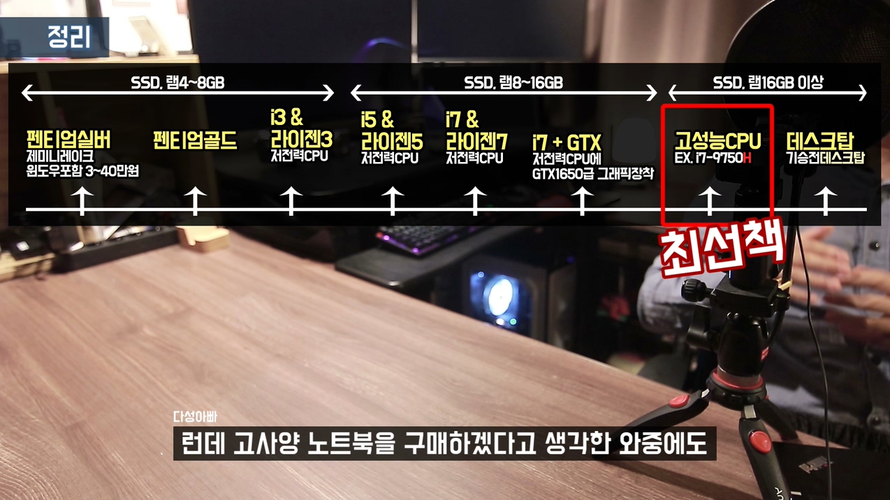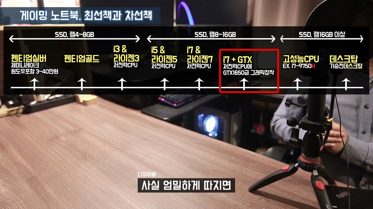 이 표를 기준으로 데스크탑을 제외하고, 어떤 노트북을 구매하면 게임이 원활하게 잘 되는지 정답은 정해져 있어요. 게임을 장시간 하겠다면 고민할거 없이