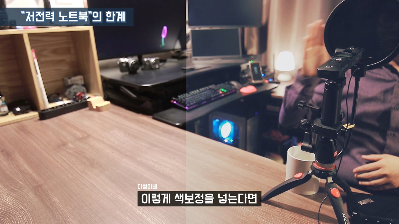 지금 보고 계신 이 영상은 저전력CPU 기반의 노트북으로 만들었습니다. 최근에 리뷰했던 노트북 중 가장 낮은 성능에 속하는 i5-8265U 위스키레이크에 램8GB 노트북으로 편집을 했습니다.