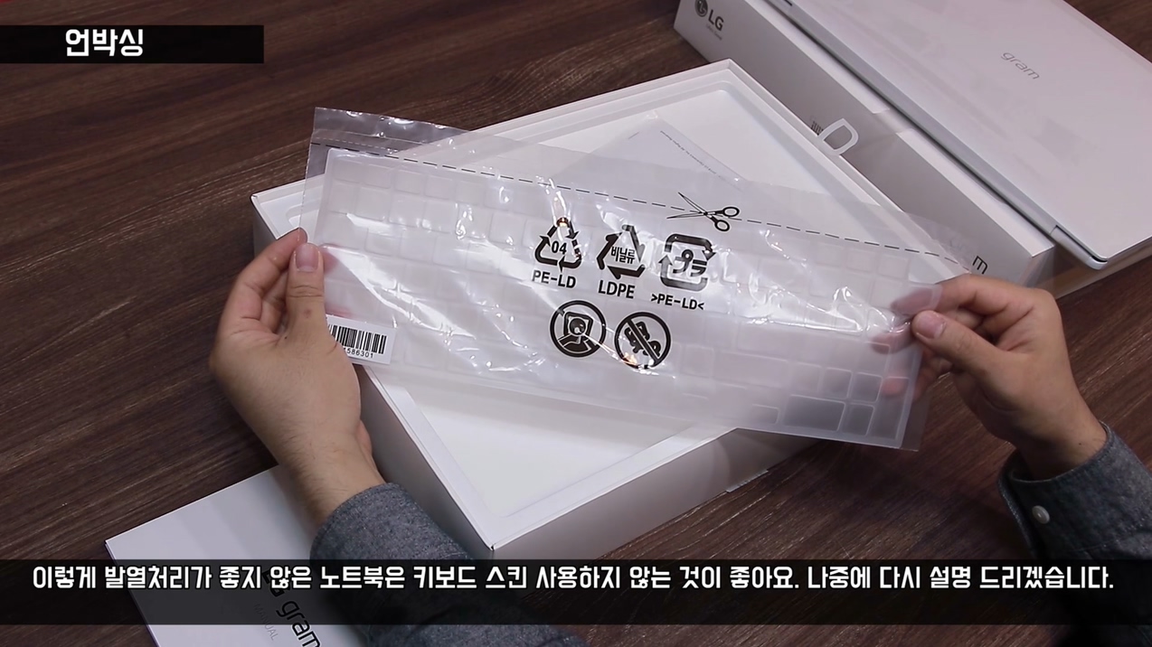기본으로 제공되는 키스킨에 대해서 말씀드리자면 모든 노트북들은 내부에 발열이 생기고 이 발열은 당연히 키보드 위로도 올라 옵니다. 그런데 키스킨을 씌우게 되면 키보드 위로 올라오는 발열을 가두는 효과가 생깁니다. 물론 발열 처리가 잘되는 노트북은 이런 걱정 안하셔도 되고, 그램을 오로지 사무용으로 사용하시는 분들도 이런 걱정 안하셔도 되니 가볍게 참고만 하세요.