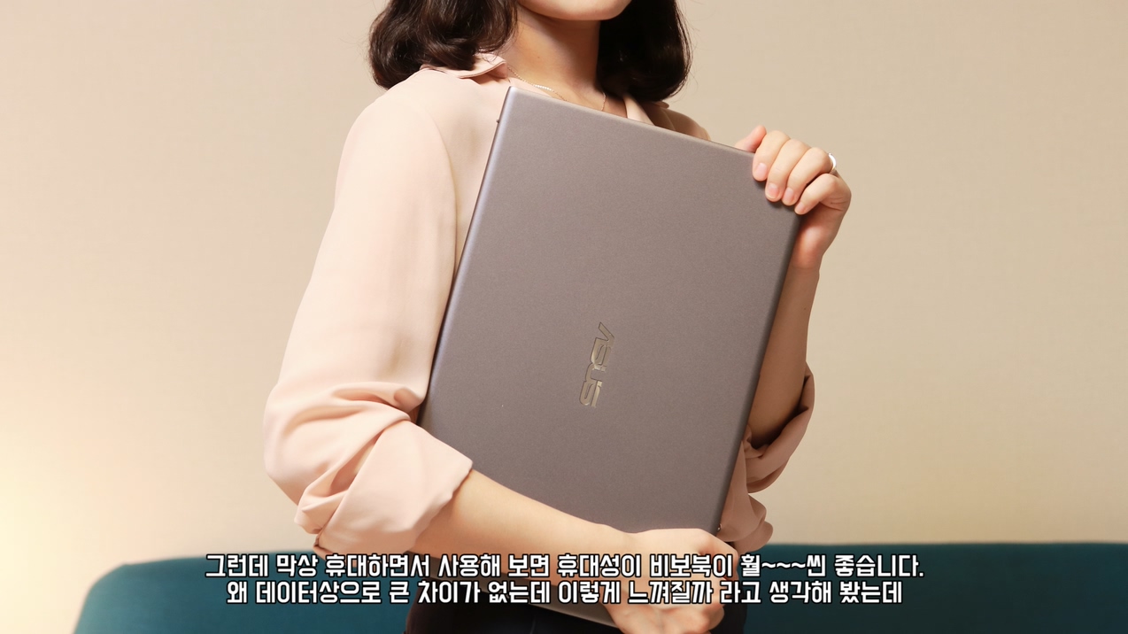 이 데이터들을 보면 이 두 제품은 휴대성에 큰 차이가 없어야 합니다. 그런데 막상 휴대하면서 사용해 보면 휴대성이 비보북이 훨~~~씬 좋습니다. 왜 데이터상으로 큰 차이가 없는데 이렇게 느껴질까 라고 생각해 봤는데, 먼저 같은 15.6인치 기준 세로길이가 짧다는 부분이 크게 다가옵니다. 비보북은 휴대할 때 정말 컴팩트 한 노트북이구나 라는 것이 체감으로 느껴져요. 그리고 무게 100g을 제가 체감하지 못할거라 생각했는데, 들어보면 확실히 느껴집니다. 반면 두께의 2mm는 생각했던 것 보다 체감으로 느껴지지 않았습니다. 이러한 이유로 휴대성은 비보북이 더 좋다고 생각합니다.